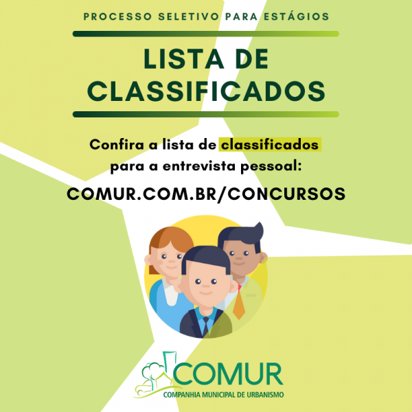 Acesse a lista de candidatos classificados para a entrevista pessoal aqui no site https://www.comur.com.br/concursos