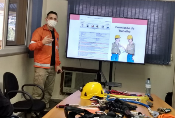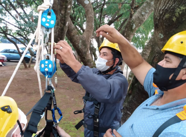 Colaboradores da Comur participaram de uma capacitação para aprimorar técnicas do trabalho em altura que foram dadas pelo instrutor Fernando Minhotti. O curso, que faz parte do Programa de Prevenção de Riscos Ambientais, orientou sobre a utilização correta de cordas e cintas para o trabalho, assim como outros equipamentos de proteção individual (EPIs). A aula ocorreu na sede da Rodoviária Normélio Stabel e teve a coordenação do técnico em Segurança, Afrânio Landsakron.