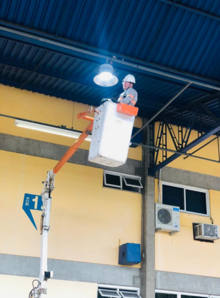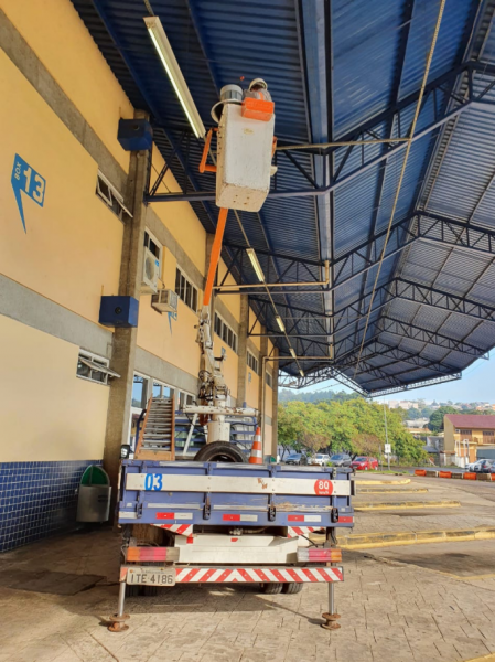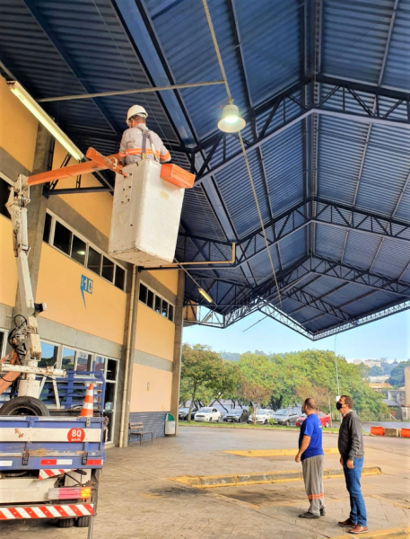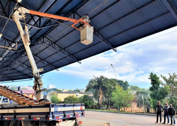 Acompanhando uma tendência mundial de sustentabilidade, a Companhia Municipal de Urbanismo (Comur) está investindo na troca das luminárias da Rodoviária Normélio Stabel. Inicialmente foram substituídas, na manhã de hoje, 17 luminárias de vapor de sódio (luz amarela) de 400 watts por lâmpadas de led (luz branca) de 200 watts que garantirão mais luminosidade e muito mais segurança a quem utiliza o setor de embarque e desembarque.