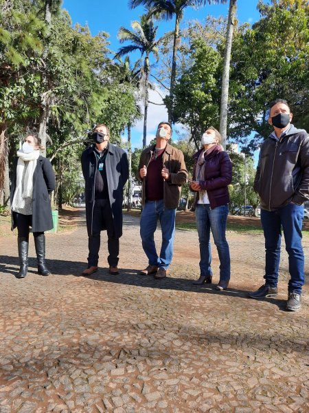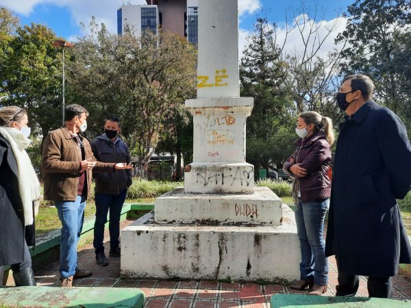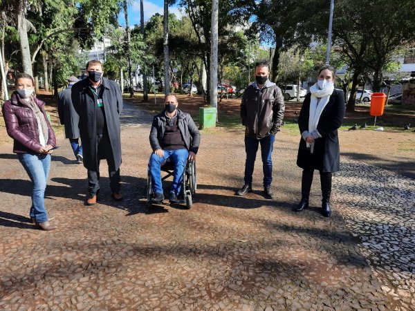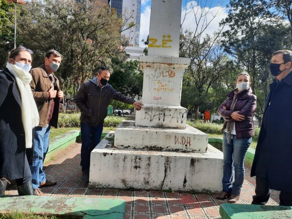A diretoria da Companhia Municipal de Urbanismo (Comur) acompanha a manutenção que está sendo feita na Praça 20 de Setembro, localizada no Centro da cidade. Capina, poda, pintura, lavagem da calçada e colocação de novas flores estão entre os serviços em andamento. O diretor-geral Maurício Alcides Saul, e o diretor administrativo-financeiro, Joel Gross, estiveram visitando recentemente o local, acompanhados pela secretária de Obras Públicas, Serviços Urbanos e Viação, Greyce da Luz, do diretor de Serviços Urbanos, Antônio da Silva, e do representante da empresa Tinta e Cor, Leonardo. Eles avaliaram a necessidade de reformas e pinturas nos monumentos, bancos, floreiras e outros pontos da praça.