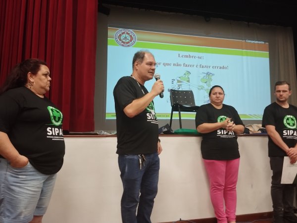 Com o lema “Seu maior patrimônio é a vida; sua maior proteção é a prevenção” estampado nas camisetas alusivas ao evento, a presidente da Cipa Gestão 2024/2025, a servidora Michelle Oliveira da Silva, junto a sua equipe de trabalho, deu as boas-vindas aos participantes.