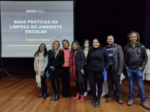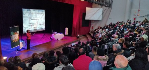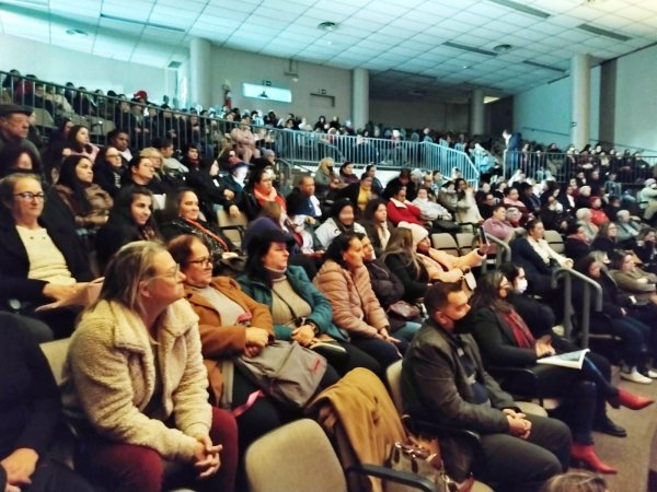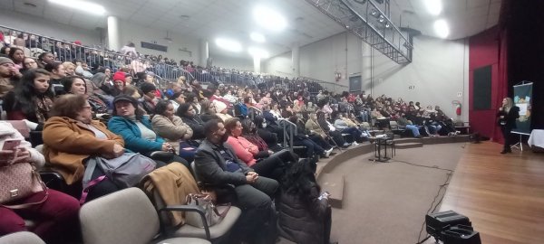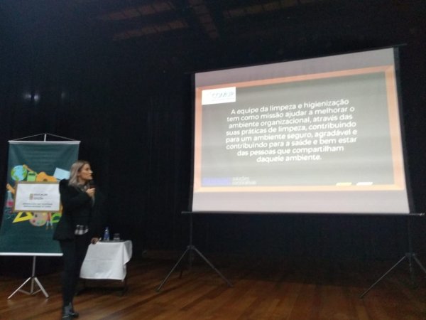 Durante esta terça-feira (17), o Teatro Paschoal Carlos Magno foi espaço de palestras e troca de conhecimento nas áreas de limpeza e organização. O evento foi coordenado em parceria entre a Companhia Municipal de Urbanismo - Comur e Secretaria Municipal de Educação (SMED) e contou com a presença da secretária municipal Maristela Guasseli. o diretor administrativo-financeiro da Comur, Joel Gross, a diretora da Smed Alessandra da Rocha Machado e Mara Helena Daubermann.