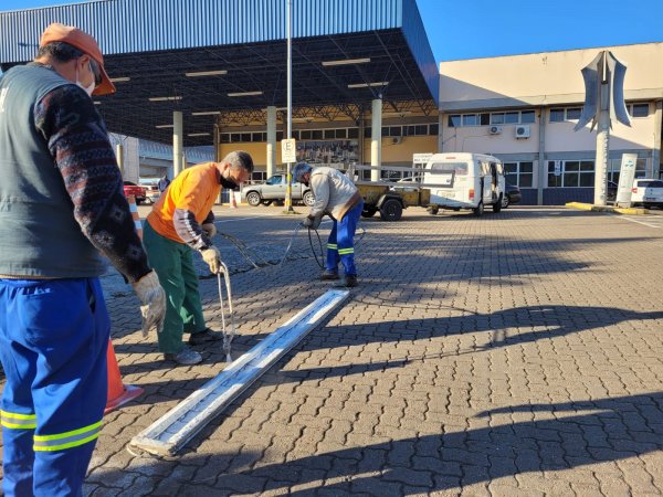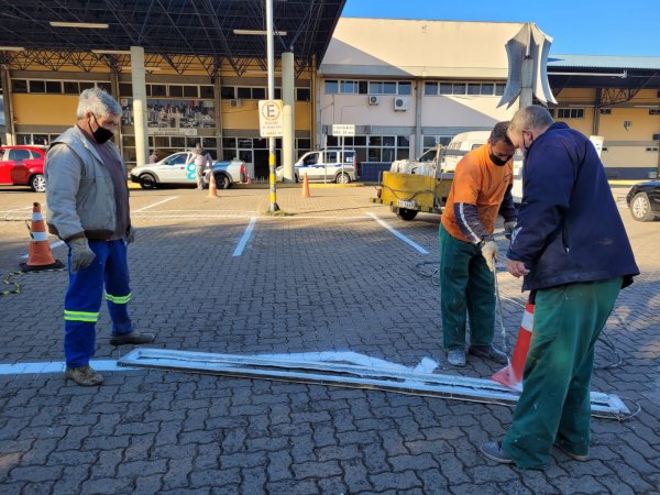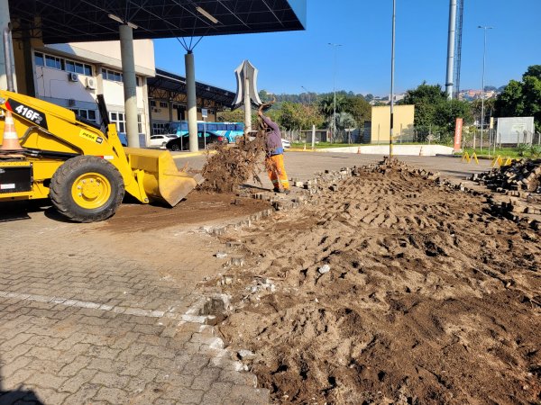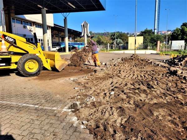 Uma série de obras estruturais na parte externa da Rodoviária Normélio Stabel está facilitando a mobilidade dos ônibus, táxis e veículos que utilizam as vias e o estacionamento. Abertura de uma saída exclusiva para os táxis, retirada de algumas árvores que estavam danificando o piso do estacionamento e o alargamento nos pontos em que os ônibus fazem as curvas são algumas das melhorias em andamento.