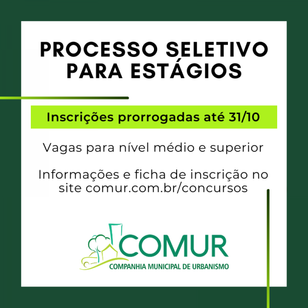 As inscrições do processo seletivo para estágios da COMUR foram prorrogadas até o dia 31 de outubro.