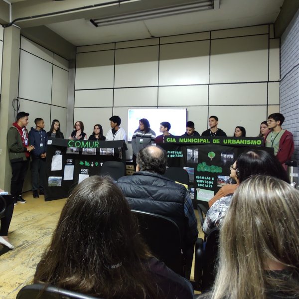 Ao fim do encontro, a nova turma do Programa Jovem Aprendiz fez uma apresentação sobre a história e os serviços prestados pela Comur, expondo maquetes feitas por eles que retrataram a sede na rodoviária e uma escola representando a rede pública de ensino.