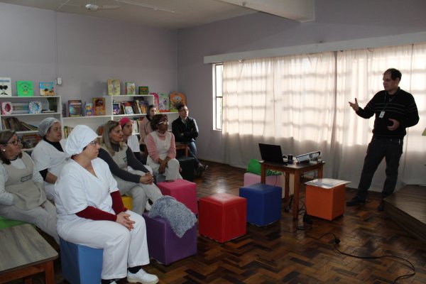 Treinamentos sobre segurança do trabalho estão sendo levados até as escolas do Município em uma iniciativa da Companhia Municipal de Urbanismo (Comur). Nos encontros, merendeiras e serventes de limpeza e copa que são colaboradores da Comur recebem informações sobre as medidas de prevenção de acidentes no seu ambiente de trabalho. Na última semana, o encontro ocorreu na escola Municipal de Educação Infantil Chapeuzinho Vermelho, no bairro Canudos.
