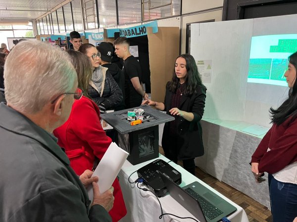 Na oportunidade, pela Comur, as jovens aprendizes Yasmin Fernanda Flores Macalao e Raquel Larrossa Lopes apresentaram em seu estande na mostra uma pesquisa científica sob o tema Processos Hidrológicos.