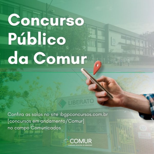 Em ambos os casos, o inscrito no certame deve previamente se informar sobre a sala para qual foi designado acessando o site ibgpconcursos.com.br [concursos em andamento/Comur], no campo Comunicados. A lista com os locais de prova também está disponível no site comur.com.br/concursos.