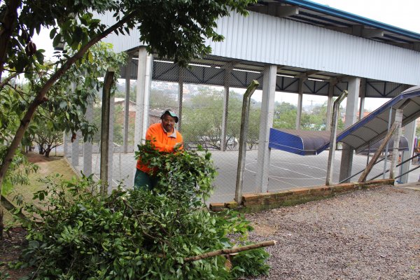 A pedido da Secretaria de Educação, a Escola Municipal de Ensino Fundamental, Elvira Brandi Grin, está com a grama aparada, folhagens e árvores podadas, e ainda mais bonita e organizada.