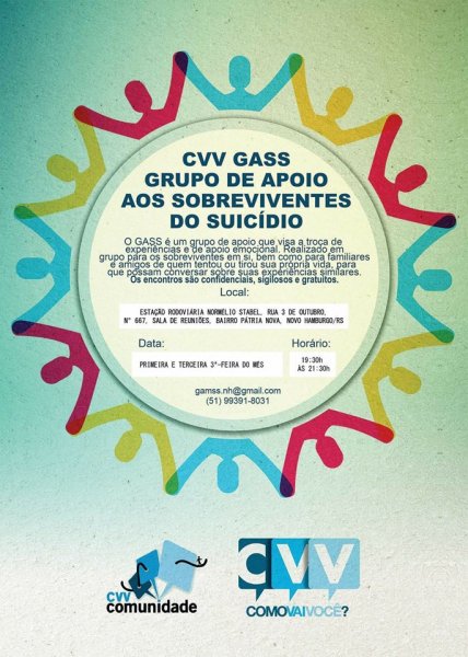 Nesta terça-feira, 20, às 19h30min, ocorre na sala de reuniões da Estação Rodoviária Normélio Stabel, localizada no 2º andar, a segunda reunião mensal do Grupo de Apoio aos Sobreviventes do Suicídio (GASS). Os encontros ocorrem em todas as primeiras e terceiras terças-feiras de cada mês.